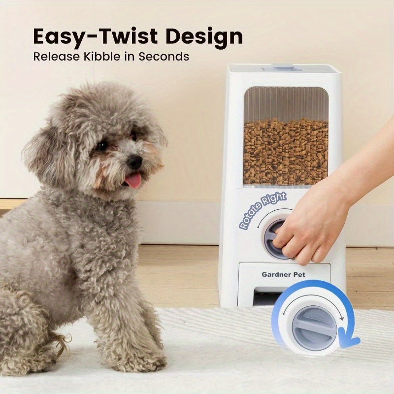 Gardner Pet Large Dog Food Container With Slide Out Bowl is a practical storage solution designed to keep your dog's kibble fresh, organized, and easy to access. Made from durable Polyethylene Terephthalate (PET) and designed to hold about 6 quarts of dry food (roughly 5–7 lb), this container helps reduce mess and protect meals from dust and dirt. Originating in Beijing, China, it combines sturdy construction with a convenient twist-and-slide mechanism for everyday use.