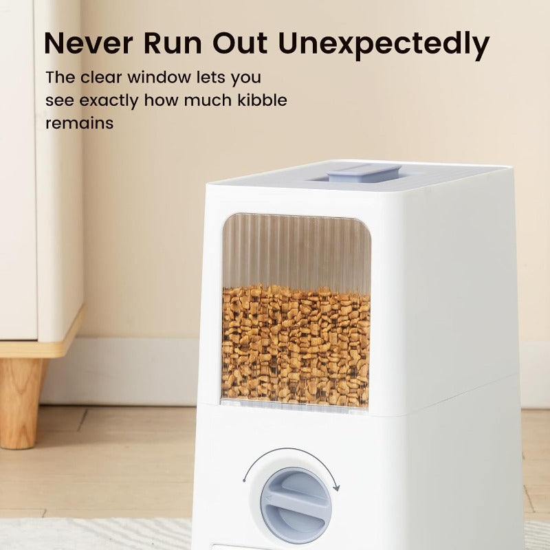 - Dust- and dirt-resistant lid helps keep kibble fresh between meals.