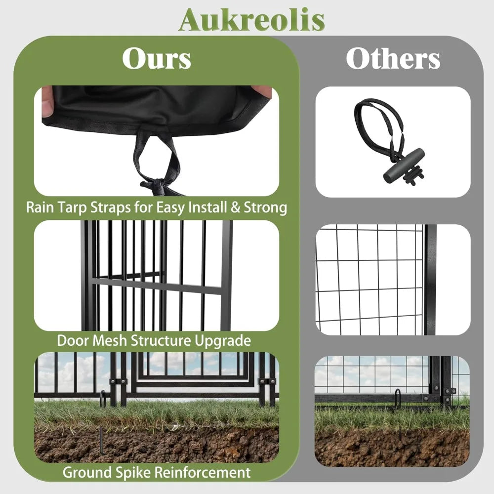 - Upgraded Sturdy Construction: Built with welded galvanized iron pipe for superior strength and chew-resistance, replacing traditional rolled wire mesh. Ground stakes securely anchor the kennel to the ground for unbeatable stability.